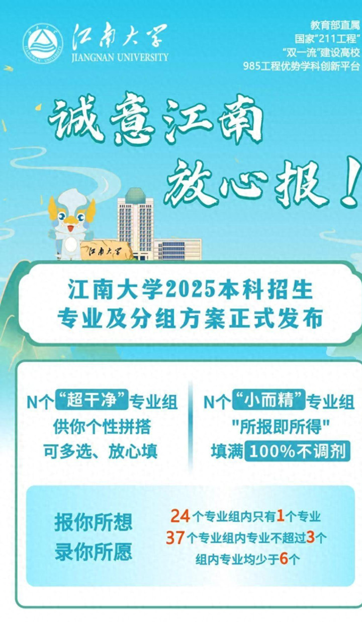 一般情况下,好多高校为了擢升登第分数线,王人会把热点专科和冷门专科混在一个组里,然而江南大学发布的2025年招生决策冲破了逍遥。